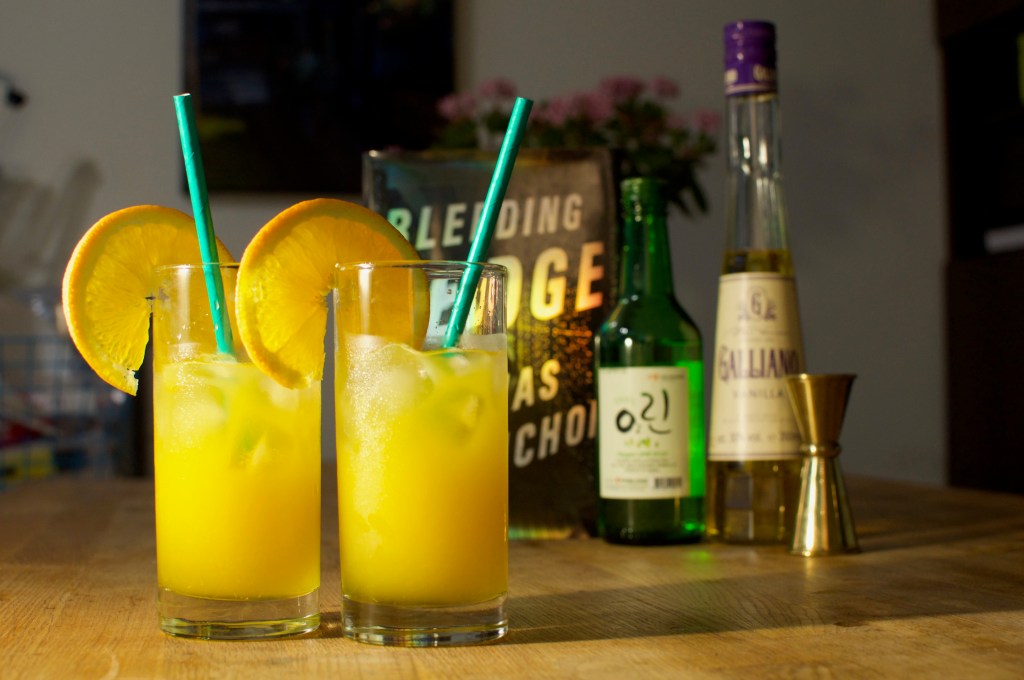 I can’t say I have much idea what old mate sprockethawk is talking about at all. The Soju Wallbanger isn’t terrible, but it isn’t great either, and I can’t imagine wanting enough to wind up banging any walls. It’s a soju version of the more typical Harvey Wallbanger, which uses vodka. Here’s what’s in mine, based on The Spruce‘s recipe for the original: