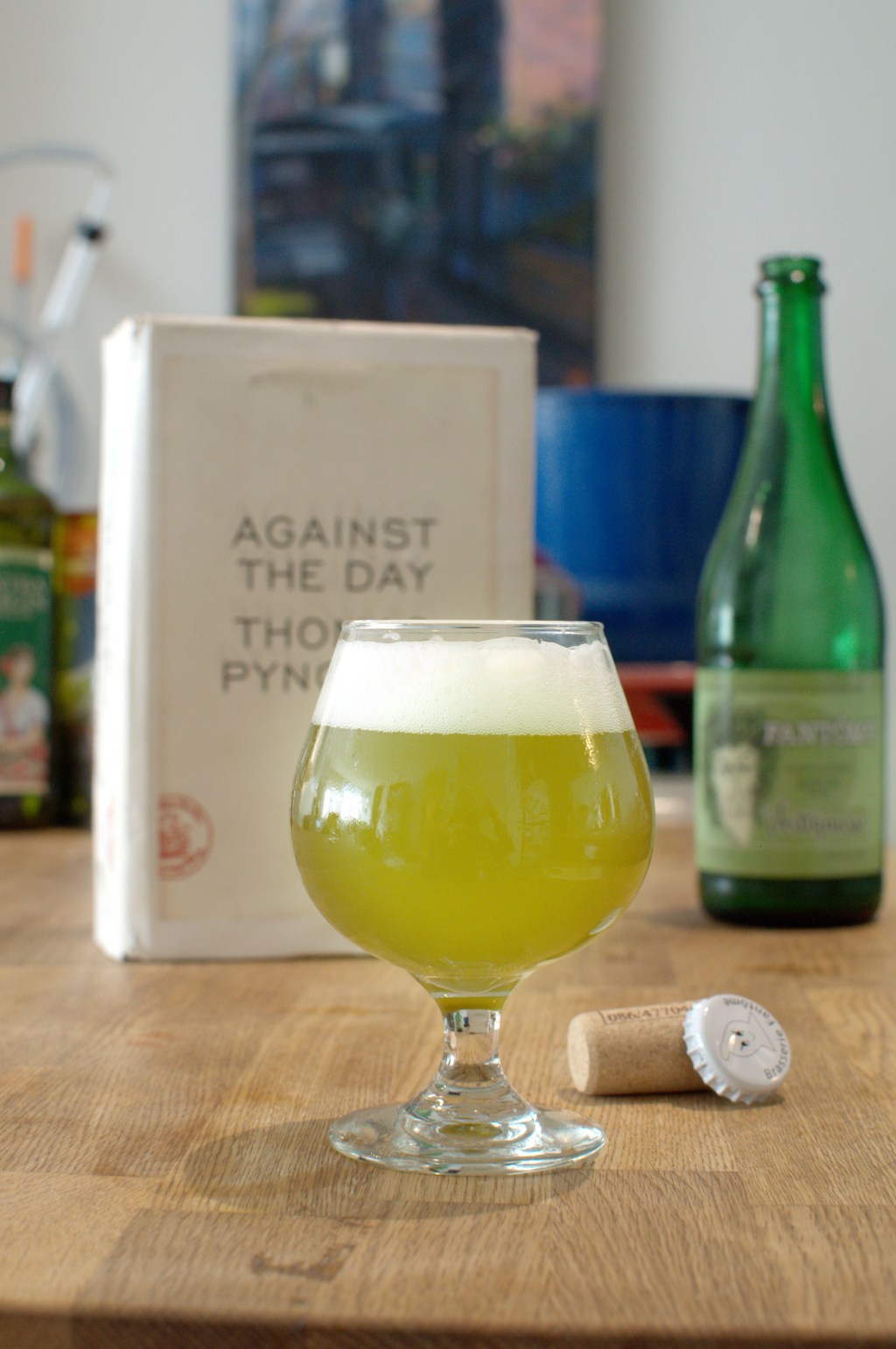 Operating on that latter theory, I have here a Fantôme Vertignasse. It’s a 4.5% saison “with spices” and it is undeniably green. The precise species of greenness seems to vary with the light — now transparent glowing light near-luminescent, now thick dark spinach juice. The reason for its greenness, a bit like the greenness of the Boll Weevil Lounge beer, is left to the imagination of the drinker/reader. Fantôme are famously secretive about their ingredients, although I came across rumours of woodruff or spinach juice.