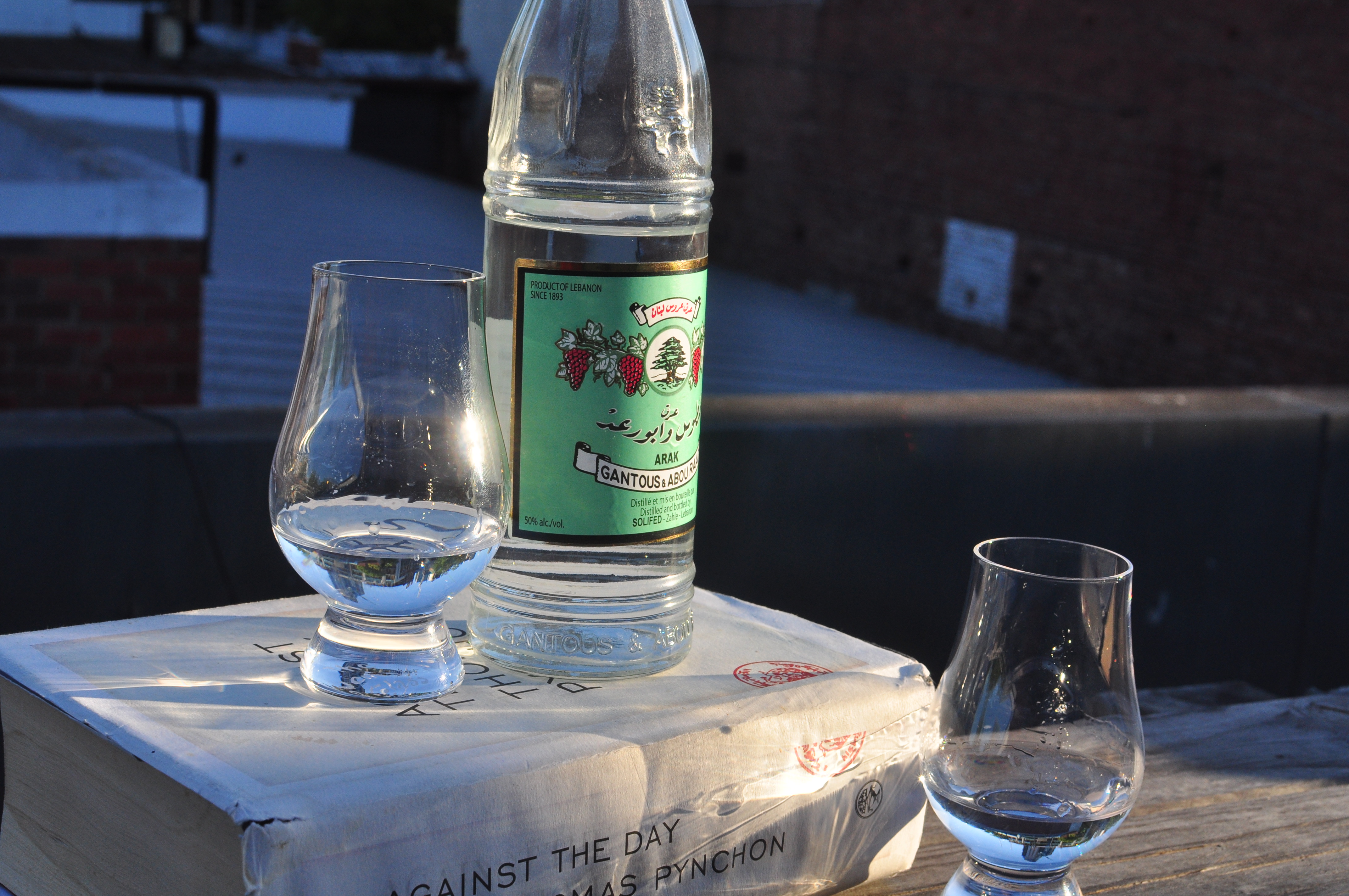 Arak is a very popular spirit throughout Western Asia, generally made from a grape spirit flavoured with aniseed. I’ve had this bottle of Arak hanging around waiting in the wings here long enough for it to have involved itself with at least one hangover and gathered some general patina of regret. The liquid itself doesn’t exactly shrug off such associations — it’s a spiky, assertive concoction that insists of embedding itself in sense memory. But returning to it here has actually been very enjoyable. When drank with water, as it’s apparently supposed to be, arak transforms into a milky liquorice cordial, dry and herbal but with a pleasant suggestion of sweetness accentuated by the louchey body. This bottle might disappear faster than, say, the apricot brandy. It is a hot, dry, desert wind kind of night here in Melbourne, and a cool-watered arak is working just fine. I can almost make out Linday’s oasis hovering at the edges of my vision.