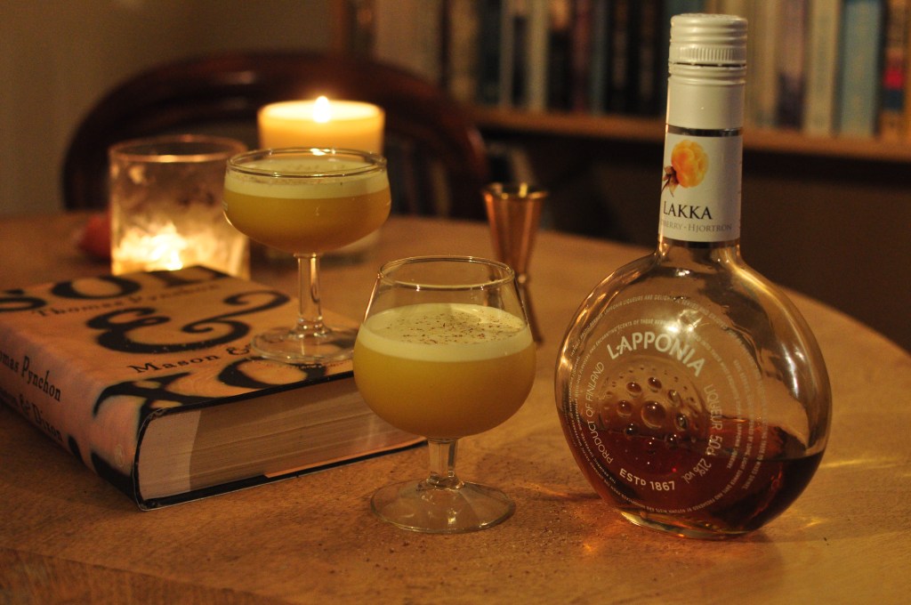Finally got round to the Cloudberry Flip! I’ve had this Finnish cloudberry liqueur sitting around for years, making its mysterious presence felt through an improvisational dash in a thrown together cocktail here and there. Mostly though, it’s been slumbering, awaiting this day.