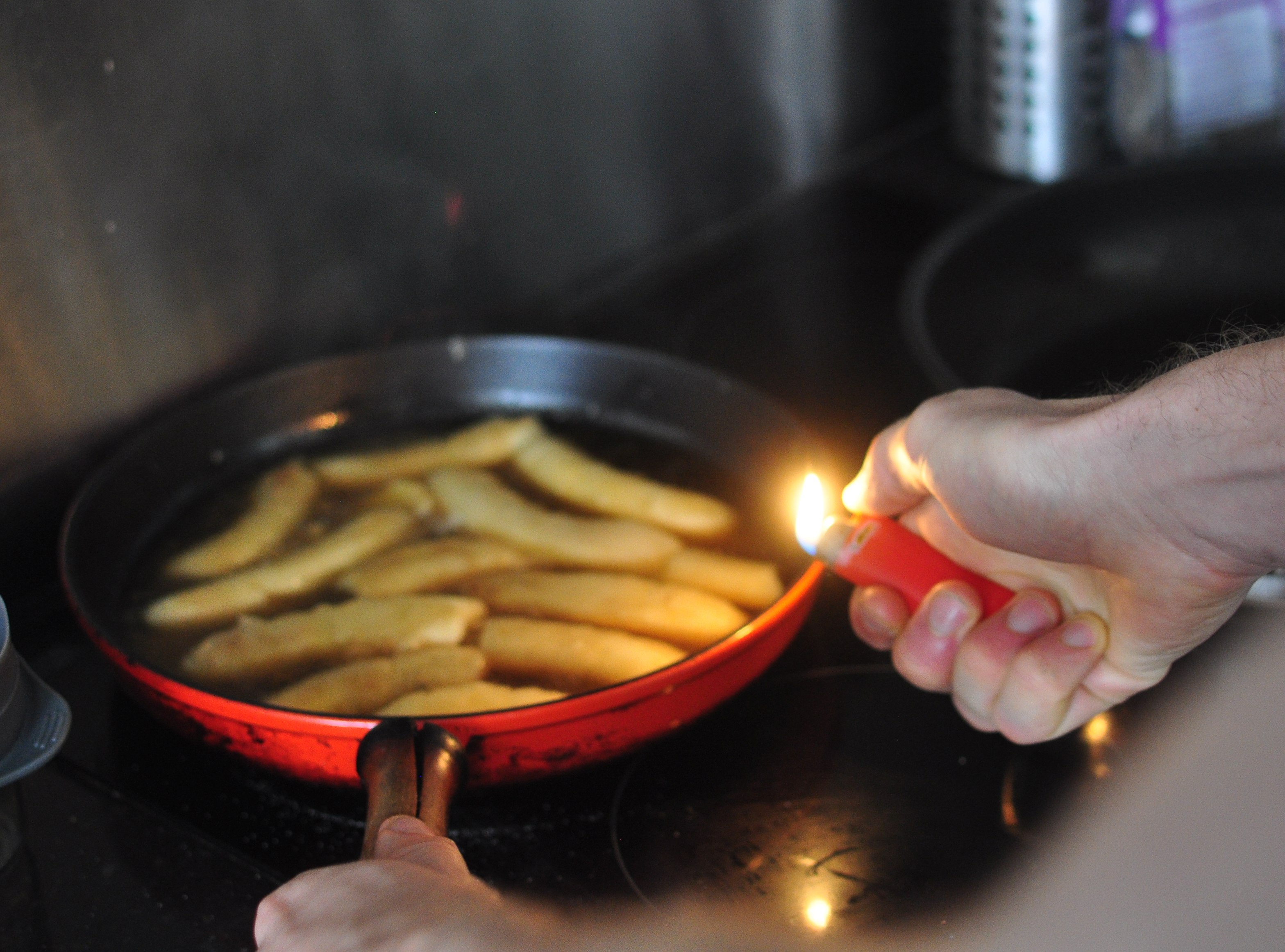 Bananas flamed in ancient brandy