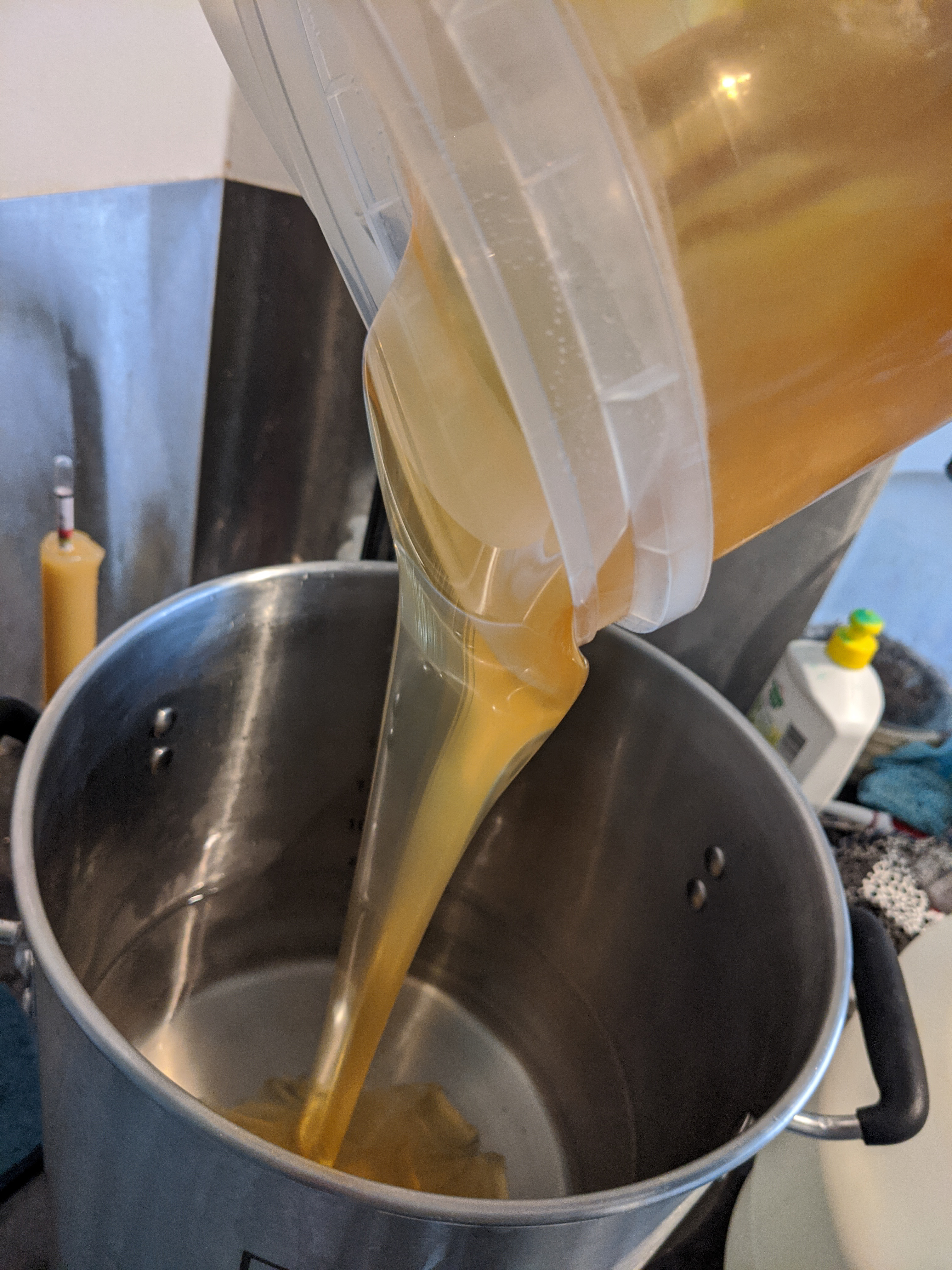 1. Transfer the mead off the banana goop bag into a different vessel for secondary fermentation.
