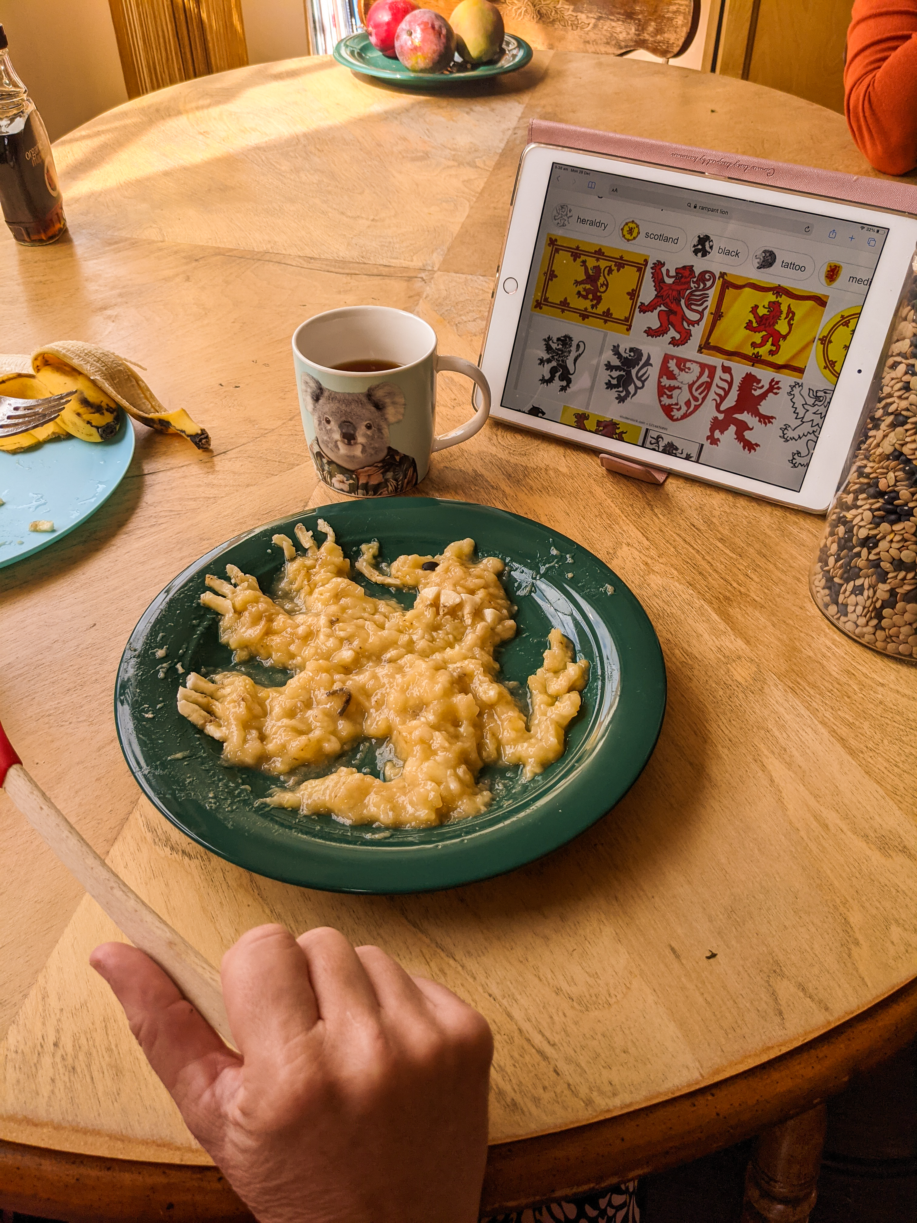 Mashed bananas in the shape of a British lion rampant