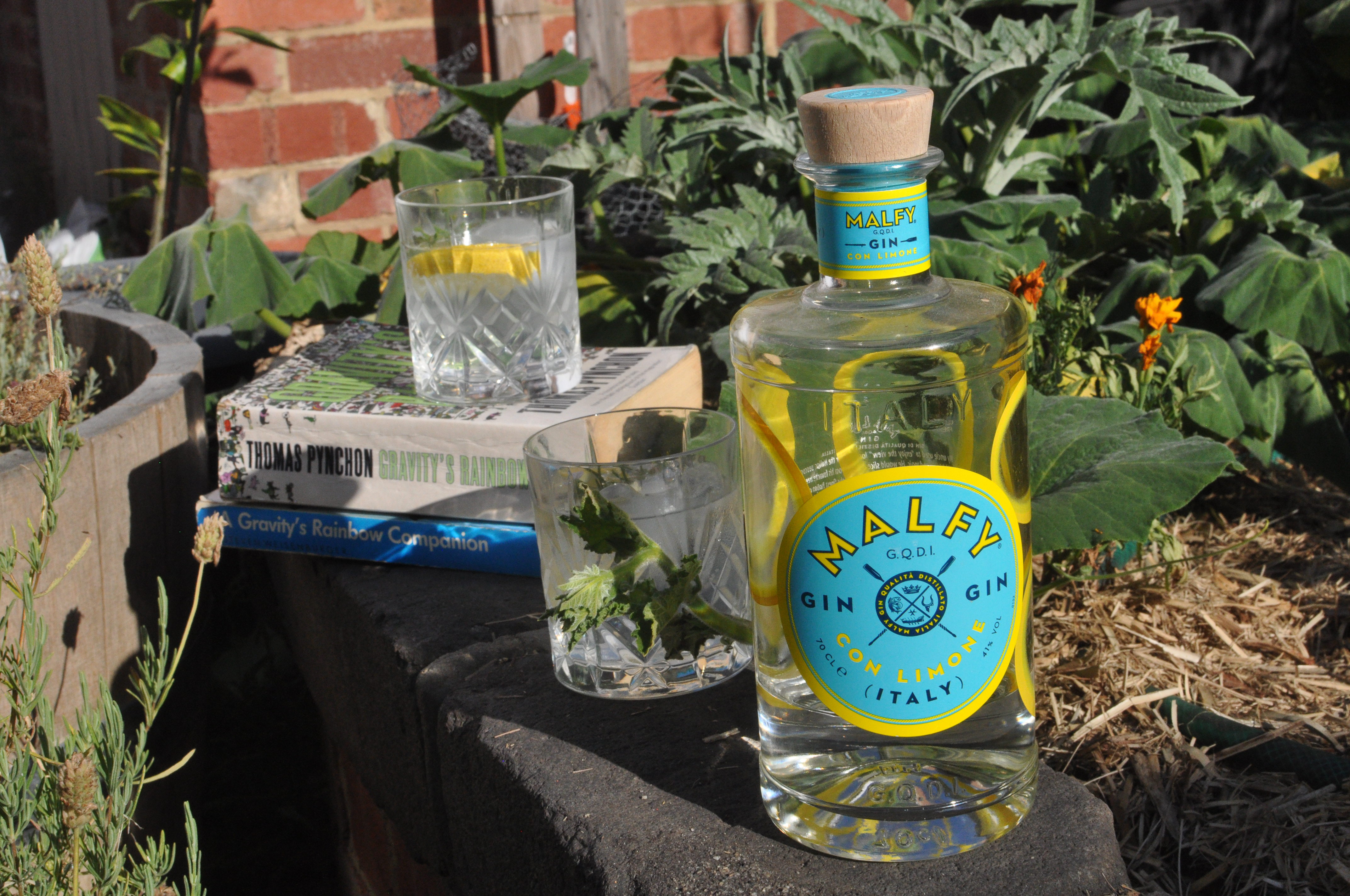 Should Tantivy be waiting for a better offer if Italian gin is all that’s on offer? I’m drinking the Malfy Con Limone, distilled in Moncalieri near Turin. And in fact is is very nice! Bright and citrusy, fresh and straightforward. In general, I reckon Tantivy’s on the money with his drink-whatever’s-going approach. Slothrop gets into some pretty nasty stuff himself, he wants to ease up a bit on the judgement I’d say.