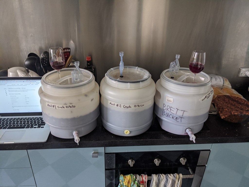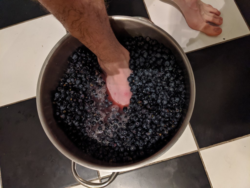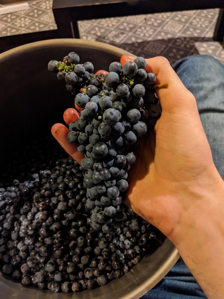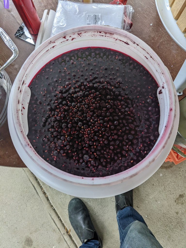 When they were all finally destemmed, I crushed them by foot. Some were left to ferment wild, some under CO2 pressure, some treated with sulphites and inoculated. A bit of it ended up bottled that November, the rest January 2021.
