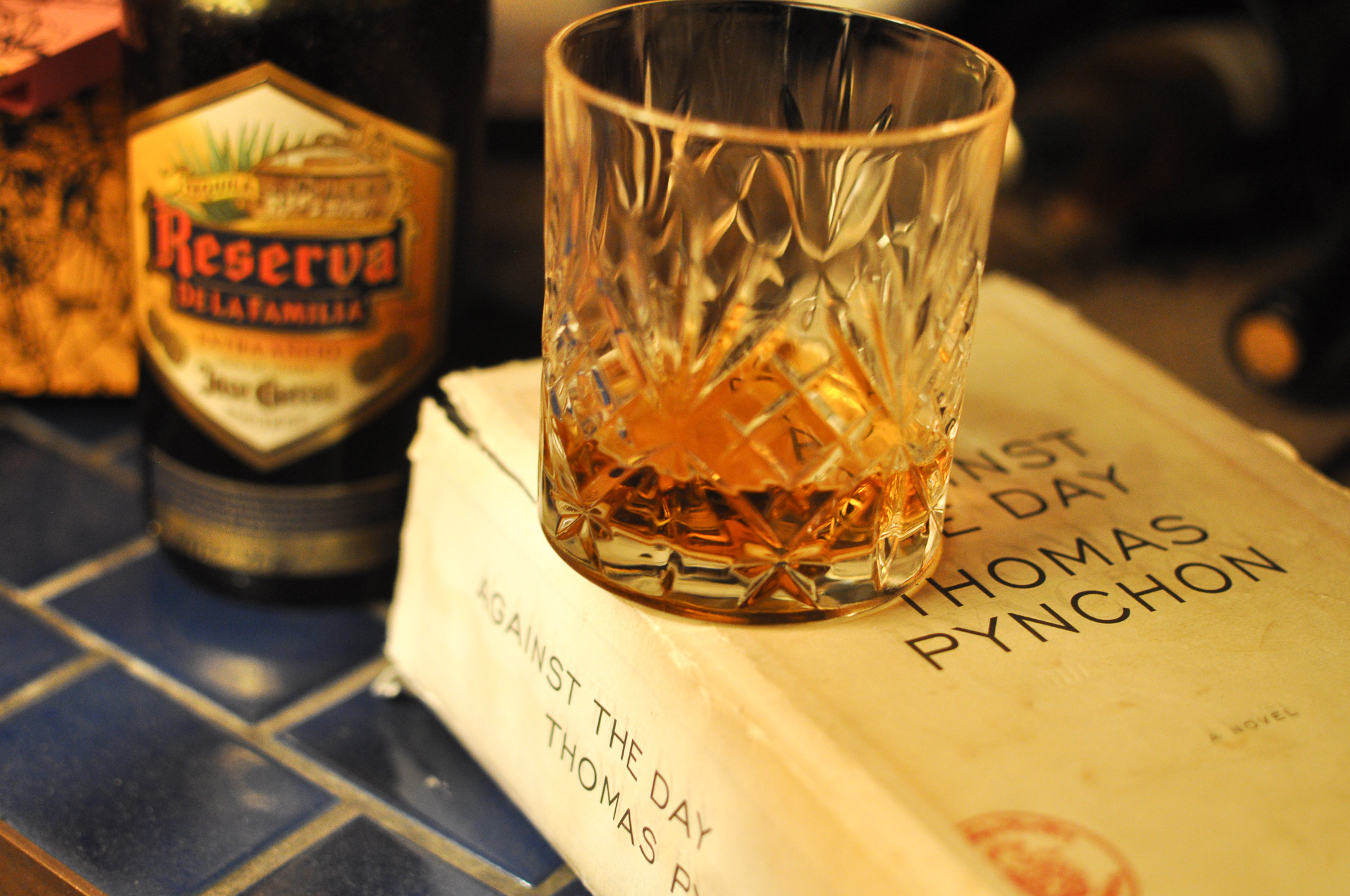 Illness in the household sadly keeps me indoors this Pynchon in Public night. Normally it should go without saying I would be out flaunting posthorns and flashing bootleg “The Small Rain” editions on the streets, which streets I’ve no doubt this evening are thronged again with acolytes of our favourite postmodernist. Failing that though, we can at least crack some fancy tequila.