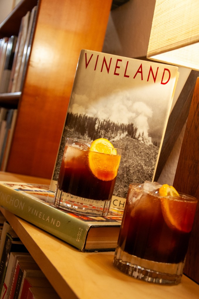 From this more familiar vantage then, let’s knock off a Vineland drink. Frenesi’s stuck more compromised than anyone, manoeuvring her maths-professor turned guru boyfriend Weed Atmann into sight of a gun at the behest of her other boyfriend, notorious cockheaded lawman Brock Vond. (It’s that same gun episode our characters find escape from around the imaginary Chenin Blanc we sipped not long ago.)
