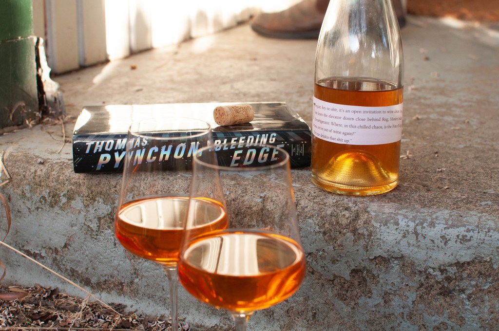 The finished product retains that orange hue (which really is more egregious than I could have hoped) along with some nutty, oxidative notes. But it also smells and tastes surprisingly pleasant. If I didn’t know it was supposed to be a straightforward white wine, I might think I was drinking an interesting amber skin-contact natural thing, like probably aged in an amphora in Georgia. It is weird though. Daytona’s “ain’t me drinking that shit up” will probably be a common reaction. It seemed so apt, in fact, that I put it on the label.