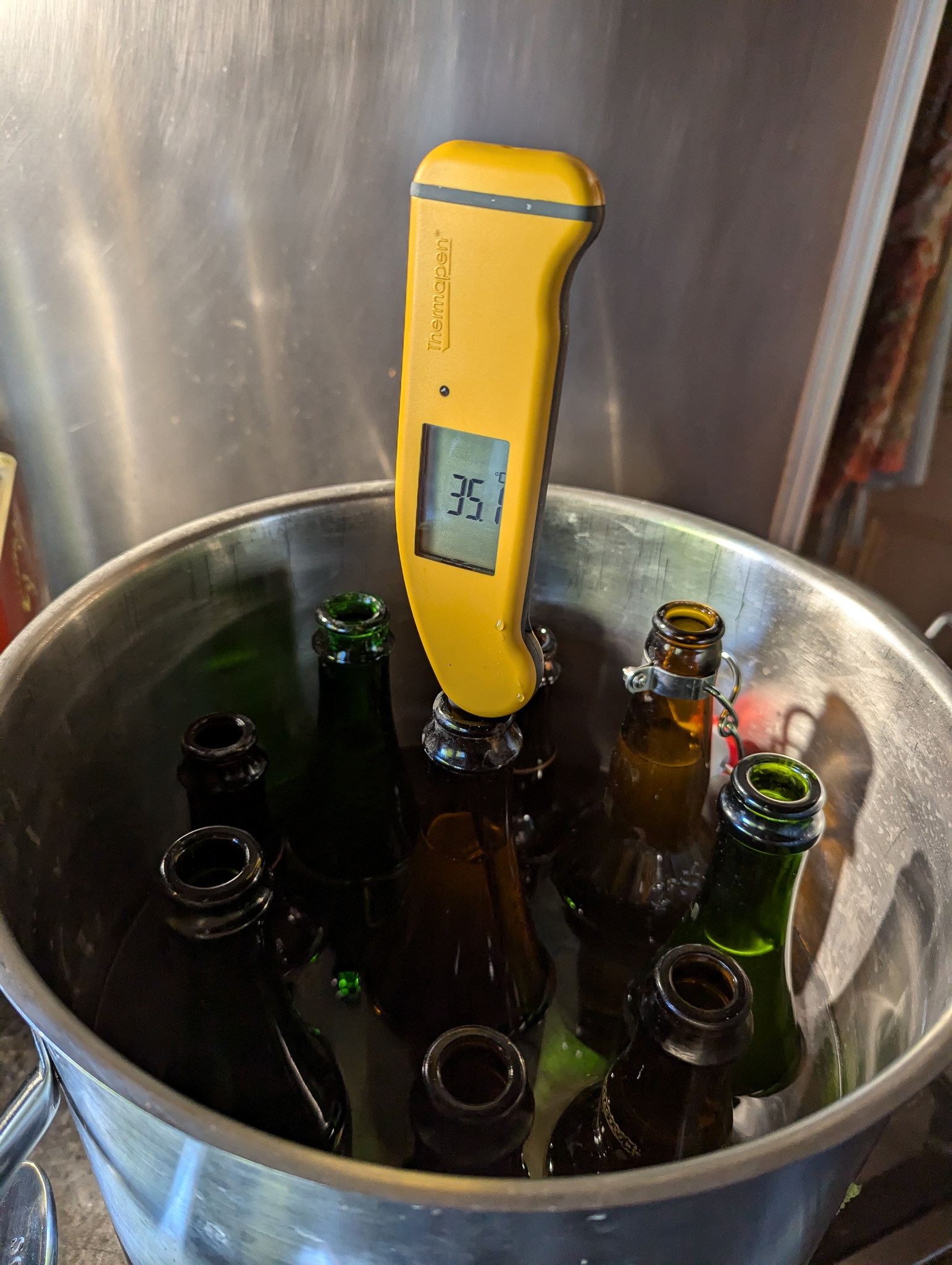 My own sake making process began by inoculating some steamed rice with some koji-kin spores. These came as dried rice grains coated with spores that shook out into an ominous green cloud. I then kept the inoculated rice warm and humid for a couple of days while the koji grew. By the end of the process, a dense white matt of koji mycelium had bound much of the rice together. The koji was ready. Some of this koji rice then joined more freshly steamed rice, wine yeast, and water to form a moto starter culture. This developed in the fridge for a few more days before stepping up with more rice and more koji in the moromi, or main fermentation. In sake making, the enzymes from the koji convert starches in the rice into sugars for the yeast to ferment into alcohol; saccharification and fermentation happen side by side. After a few weeks of fermentation, I ran the sake through some cheesecloth to separate it from the ricey lees known as kasu. I then gave it a few more weeks cold in the fridge before bottling. A couple of bottles went straight in the fridge, and the remainder I pasteurised by heating to 60°C. (If you would like a more detailed description of the sake making process, I highly recommend my two chief sources: Small Batch Booze and the Mad Fermentationist).