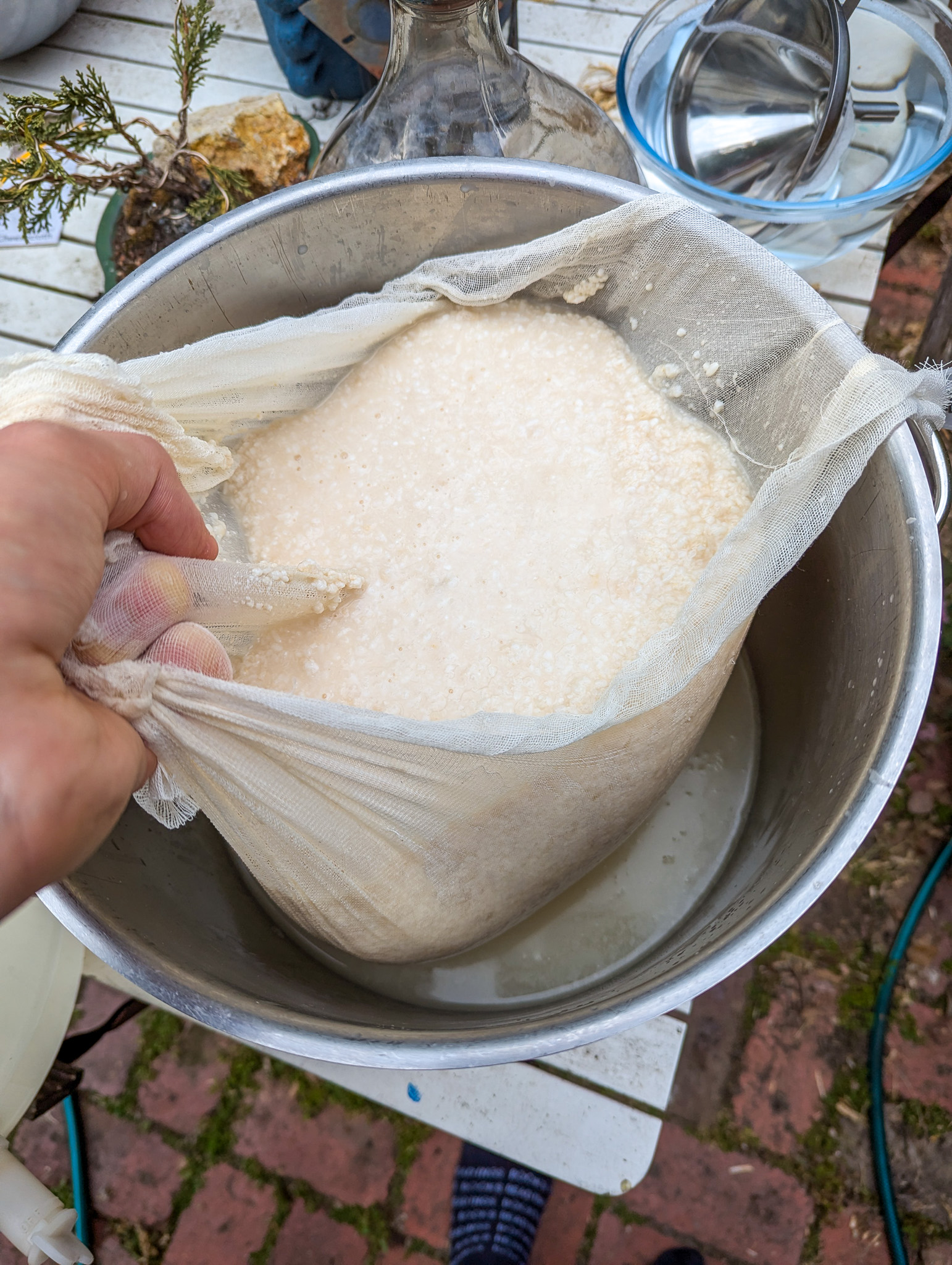 The end result was a greater success than I dared hope. It not only looks, smells, and tastes like sake, it actually seems to be quite good! It is reasonably delicate despite its ~16% abv, with notes of pear, citrus, and, uh, steamed rice. (The pictures here show it in a lovely old sake set inherited from my late grandmother—the set quite possibly holding sake for the first time here). The process of making it was one of slow, focused attention—a very different energy to what Old Kenosho is giving off! Slothrop, or what’s left of him, seems to be mixing a bit of Old West moonshiner into his vision of Kenosho. The succinct clarity of the actual finished product is almost the antithesis of the dark spiralling vaudeville derangement of the end of Gravity’s Rainbow. But perhaps I’m underestimating Kenosho. Perhaps that’s the part of the point: amidst chaos, the act of creation can still carve out its own quiet order.