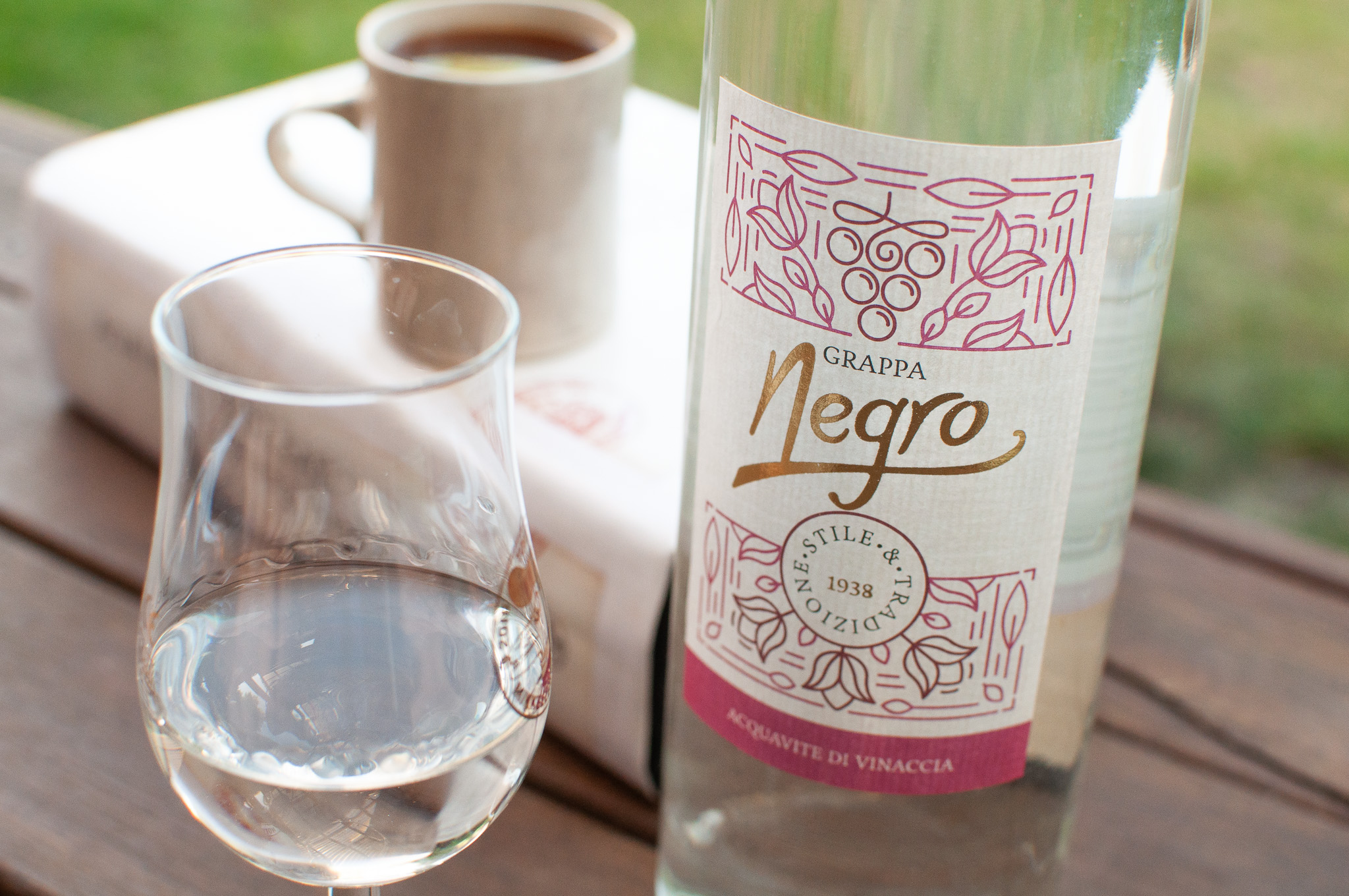 The grappa I have here is Negro Acquavite di Vinaccia—literally “pomace spirit,” as grappa is distilled from the grape skins and stems left over after winemaking. Unusually, it hails from Putignano in Puglia, in southern Italy, rather than the more typical grappa heartlands of the north. It opens with a complex aroma of orange, dark chocolate, raisins, plums, and almonds, and the palate follows through with notes of table grapes and more choc-orange, cut by a pleasant green, seedy-stemmy quality that gives it structure. It’s sweet and floral throughout. I drank it alongside a short espresso, in the classic Italian style, and the grappa’s gentle sweetness played off the coffee’s bitterness extremely nicely. The whole setup made me wish I were an older Italian gentleman with a street corner to perch on and a steady stream of passersby to pair with my daily grappa and espresso.